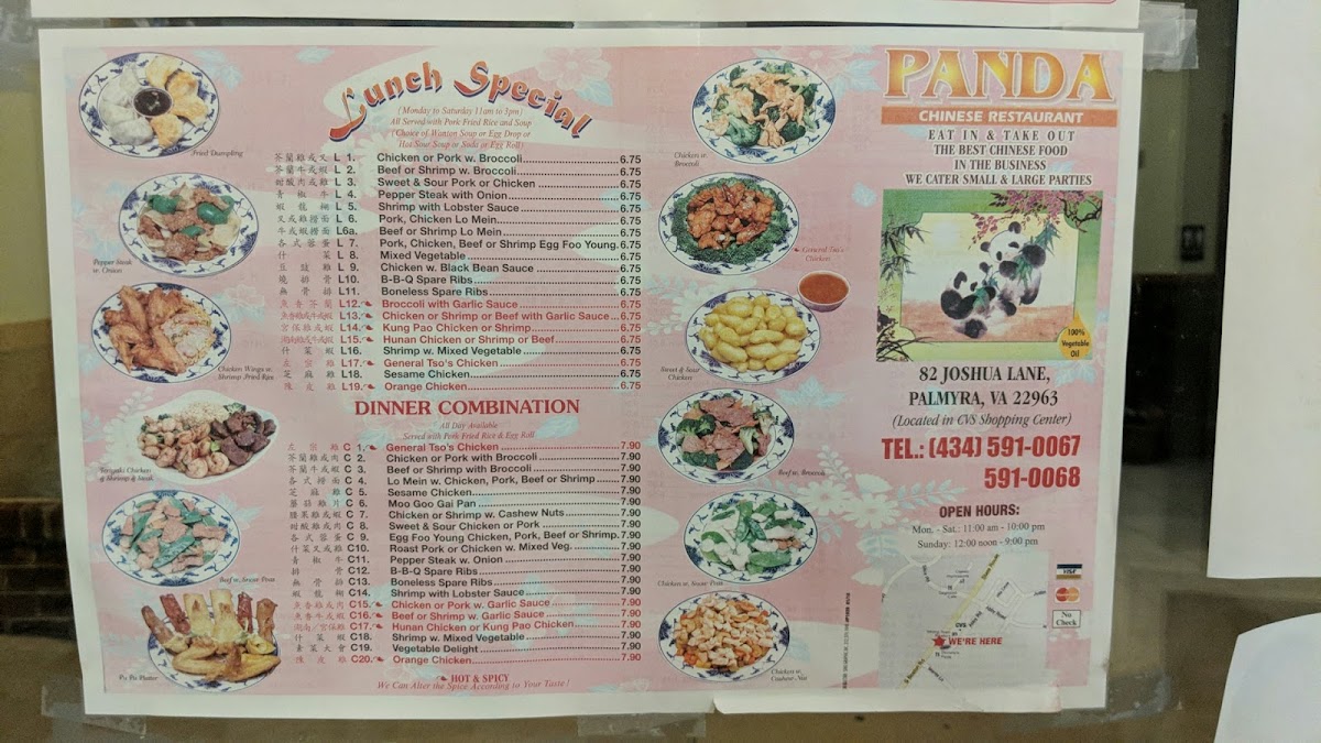 Dining at Panda Kitchen on 82 Joshua Ln, Palmyra, VA 22963 offers a satisfying dive into classic Chinese-American flavors, and the menu reflects a focus on variety and value. The Dinner Combination section showcases staples like General Tso's Chicken, Chicken or Pork with Broccoli, and Beef or Shrimp with Broccoli, alongside comforting noodle options such as Lo Mein with Chicken, Pork, Beef, or Shrimp, and the ever-popular Sesame Chicken. Beyond the combos, the menu offers a solid range of individual dishes including Mixed Vegetable, Chicken with Black Bean Sauce, Chicken or Pork with Broccoli, Beef or Shrimp with Broccoli, and Sweet & Sour Pork or Chicken, allowing diners to mix and match flavors to their liking. Each dish is prepared with a balance of sauces and seasonings that cater to both familiar tastes and those seeking a slightly bolder palate, making Panda Kitchen a reliable spot for a hearty, flavorful meal without breaking the bank.